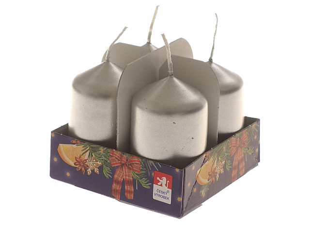 Obsah balenia: 4 ks sviečok rovnakej veľkosti rozmery: výška cca 6 cm, priemer cca 4 cm