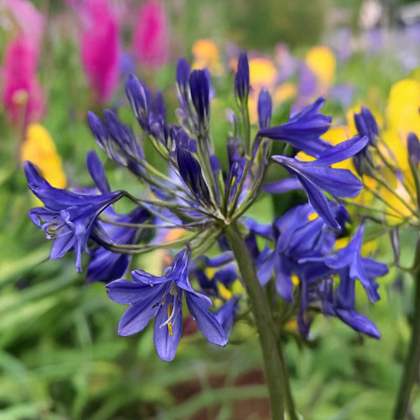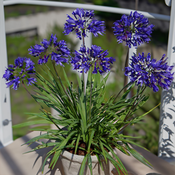 Agapanthus 'Brilliant Blue' je spoľahlivý priateľ z juhu, ktorý ťa naučí spomaliť a vychutnať si každý okamih. Nenáročný a vždy pripravený rozžiariť letné dni čistou modrou krásou. Vyniká kompaktnosťou, hustým trsovitým rastom a sviežozelenými listami, ktoré pripomínajú okrasné trávy. Počas leta nesie na dlhých tenkých stonkách veľké guľovité súkvetia sýtomodrých kvetov s jemne tmavším pruhovaním, čo vytvára skutočne „brilantný“ efekt. Kvety si dlho držia tvar a farbu aj vo váze – ak teda hľadáš modrú trvalku s bonusom „rezaného kvetu“, si na správnej adrese.