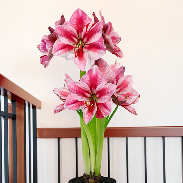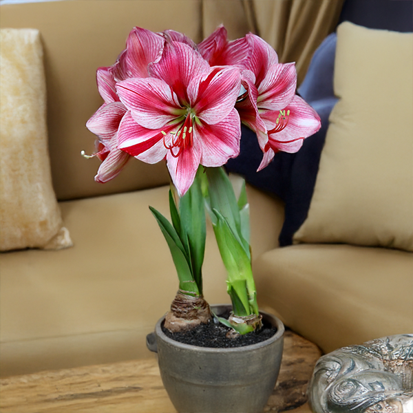 Hippeastrum 'Gervase' je zornica ako stvorená pre milovníkov jedinečnosti. Jej podmanivé kvety sú ako maľované a naplno spĺňajú atribúty originálneho umeleckého diela. Na bielych lupienkoch sa náhodne rozlievajú výrazné ružovo-červené pruhy a škvrny, pričom každý kvet nesie jedinečnú kresbu, a práve preto pôsobí tak výnimočne. Táto nepredvídateľná krása robí z 'Gervase' neprehliadnuteľný stredobod zimného interiéru. Kvet dosahuje priemer až 20 cm a rozkvitá na pevných, až 60 cm vysokých stonkách. Každá cibuľa vytvorí 1–2 stonky s postupným kvitnutím, čím sa efektívne predĺži okrasná funkcia rastliny až na niekoľko týždňov.