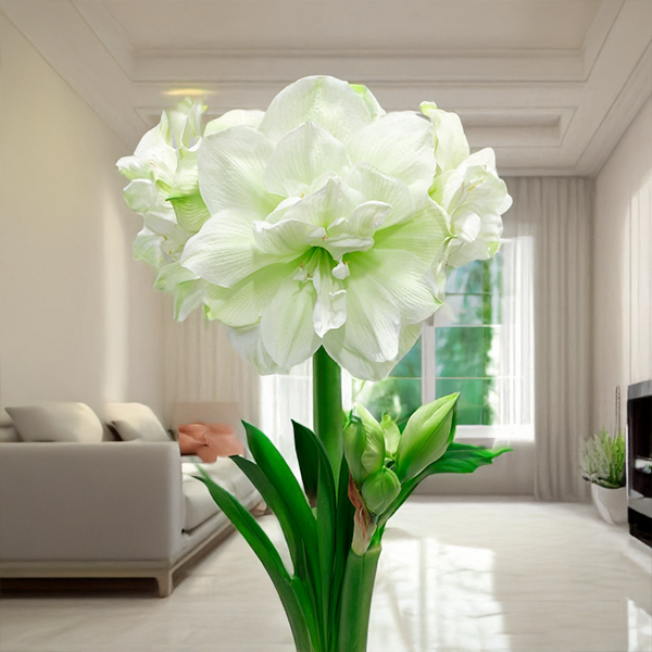 Hippeastrum ‘Marilyn’ je zornica s dušou filmovej hviezdy strieborného plátna. Jej veľké plné kvety žiaria elegantnou bielou farbou, pričom v strede ich zdobí jemný zelený nádych. Každý kvet je ako šepot noblesy, ktorý sa nebojí ukázať svoju hodnotu v plnej kráse. Táto odroda patrí medzi dvojité hybridy; dorastá do výšky 50 až 70 cm a z jednej cibule vyrastie viacero stoniek, z ktorých každá nesie niekoľko kvetov s priemerom až 20 cm. Kvitne približne 6 až 12 týždňov po výsadbe.