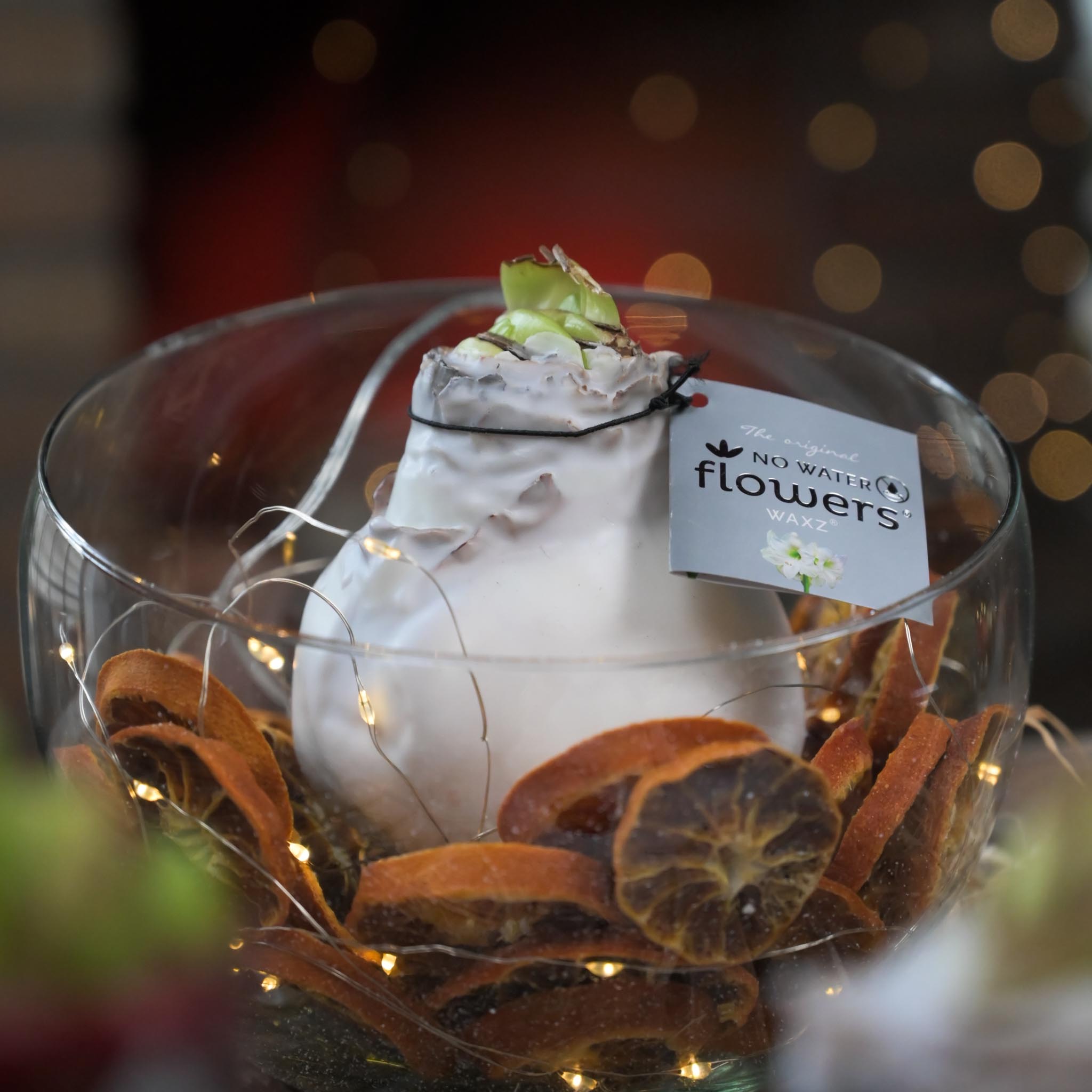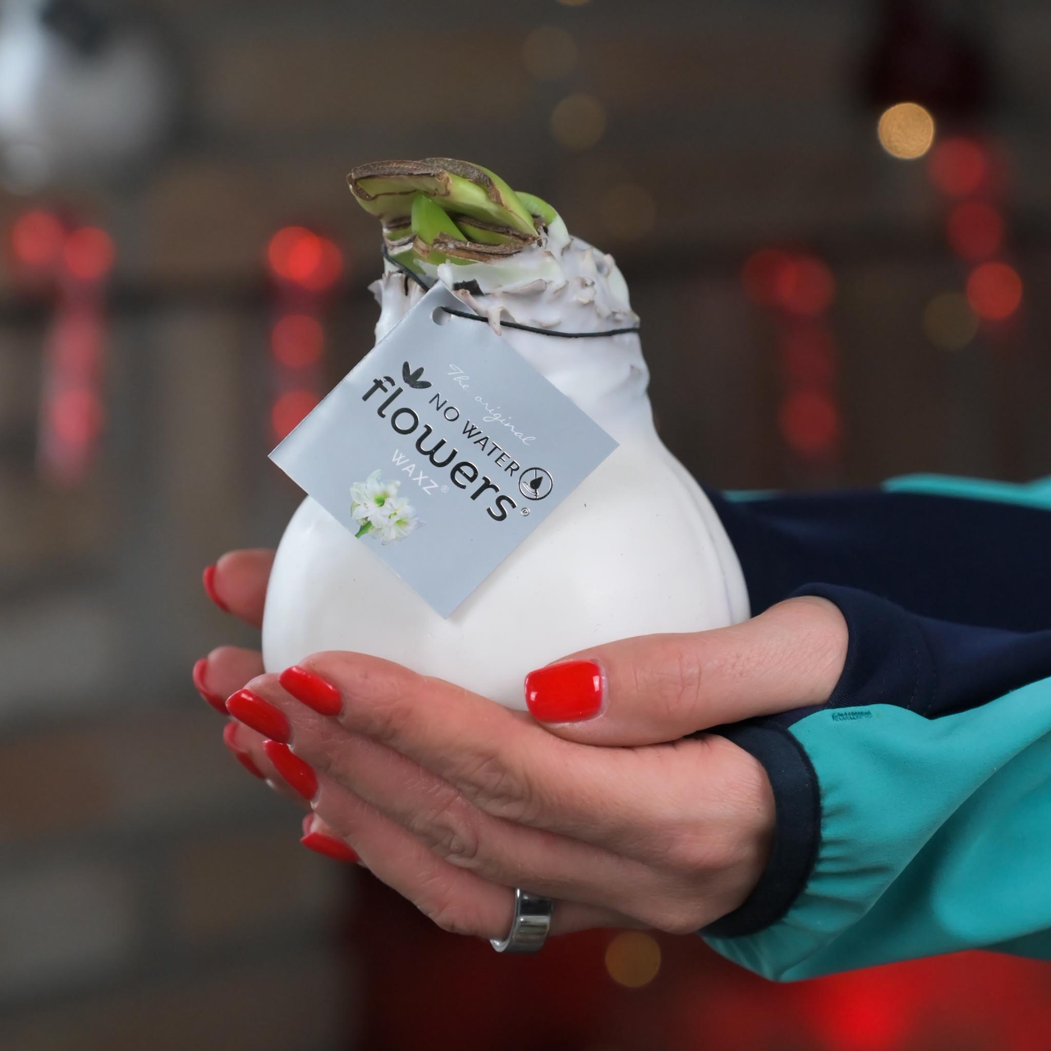 Amaryllis voskovaný biely je ako zimné prekvapenie v podobe kvetu. Nepotrebuje zeminu, ani zložitú starostlivosť , stačí ho položiť na svetlé miesto a čakať na zázrak. V jeho cibuľke je ukrytý celý príbeh - rozvíjajúci sa do krásy bez toho, aby sme doň museli zasahovať.