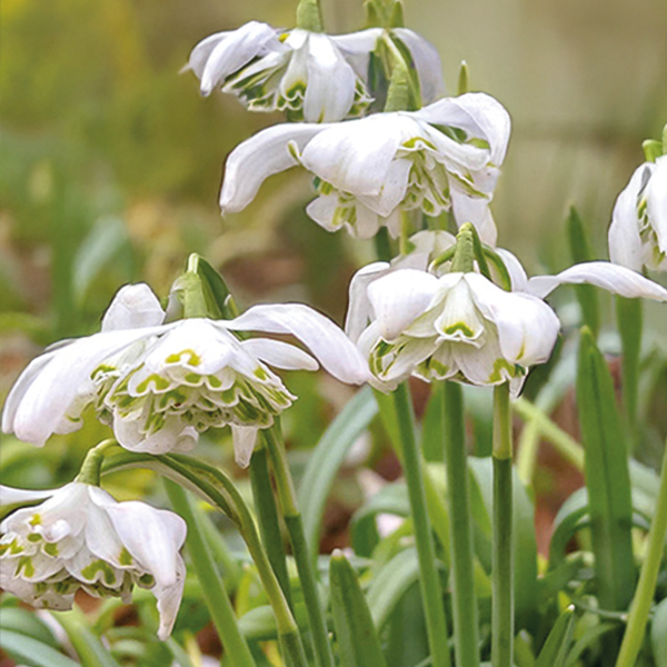 Galanthus nivalis ‘Flore Pleno’ je nežný zázrak predjarného obdobia. Táto plnokvetá forma snežienky zaujme delikátne vrstvenými bielymi lupienkami, ktoré tvoria bohato členitý, takmer rozprávkový kvet pripomínajúci snehovú vločku. Jemné zelené akcenty vo vnútri kvetu mu dodávajú eleganciu a živý detail. Odroda získala prestížne ocenenie Award of Garden Merit (AGM) od britskej Kráľovskej záhradníckej spoločnosti (RHS) a stala sa skutočným záhradníckym favoritom.