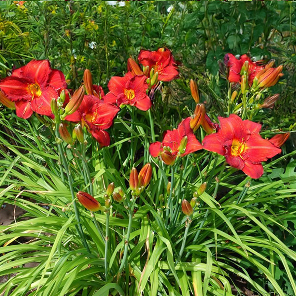 Hemerocallis ‘Chicago Apache’ patrí medzi najpôsobivejšie letné trvalky a s určitosťou vnesie počas horúcich dní do záhrady dramatický závan, optimizmus a energiu. Je to trvalka, ktorá neustále odzrkadľuje silu a stálu krásu leta — nezlomná, búrlivá a spoľahlivá. Jej majestátne, až 12 cm veľké kvety sú jasne šarlátovo-červené, s jemne zvlnenými lupeňmi, kontrastným žltozeleným hrdlom a bielymi stredovými žilkami. Patrí medzi tetraploidné odrody, vďaka čomu je odolnejšia, má silnejší rast, hrubšie lupene a sýtejšiu farbu kvetov.