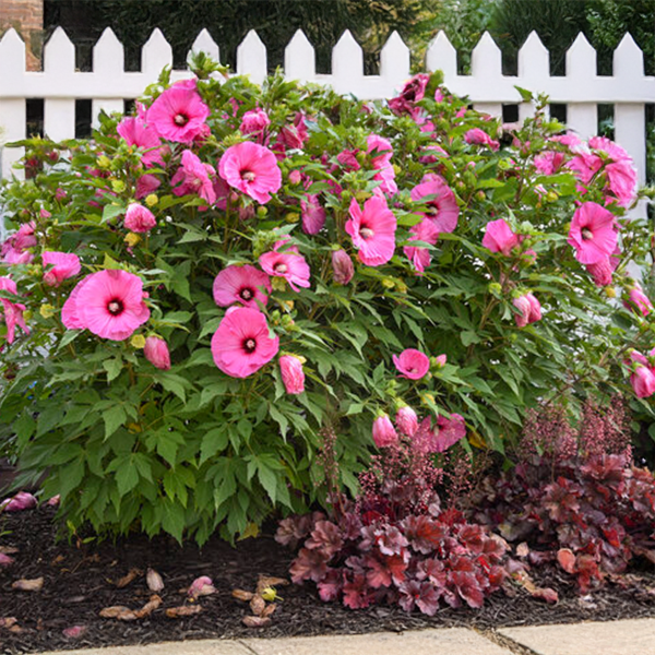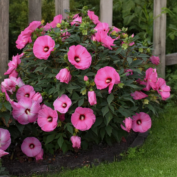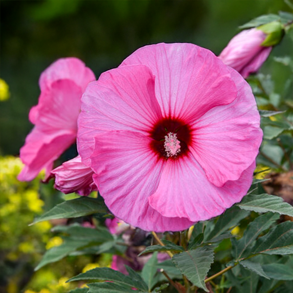 Hibiscus moscheutos ‘Candy Crush’ je ako sladká záhradná pohľadnica z trópov. Každé leto rozkvitne do dramatickej krásy s obrovskými, sýtoružovými kvetmi, ktoré majú tmavý vínový stred a pôsobia ako hodvábne taniere vznášajúce sa nad sviežimi listami. S priemerom 20–25 cm je každý kvet malým umeleckým dielom, ktoré prinesie do tvojej záhrady závan exotiky.
