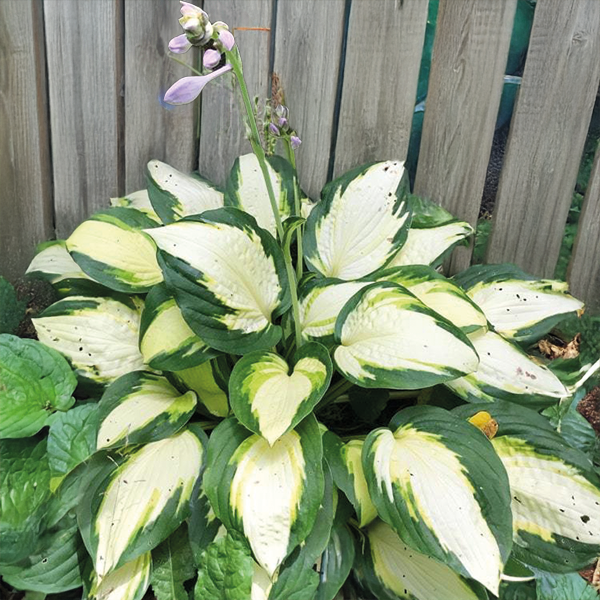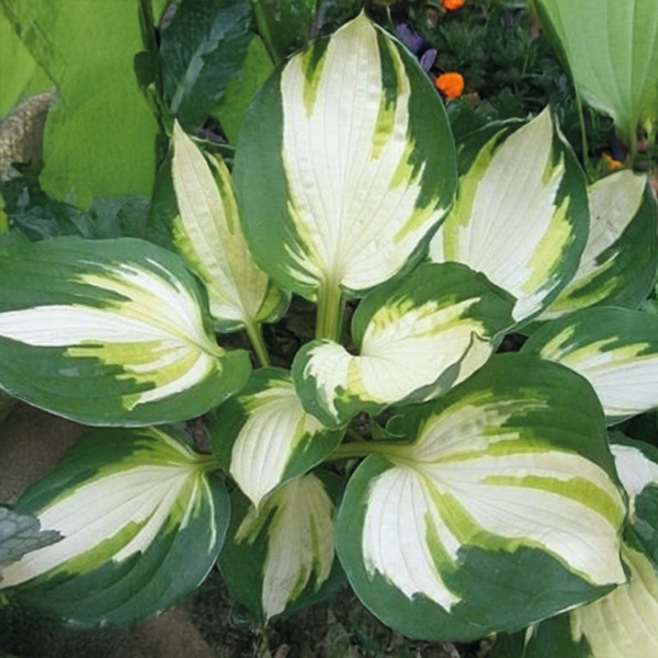 Funkia Color Festival je skutočný šperk medzi hostami - jej listy sú ako maliarske plátno. Stred listu žiari krémovo-bielou farbou, ktorú obklopuje zelený pás a jemne žltkastý okraj. Tento viacfarebný efekt robí z rastliny výraznú dominantu tienistých záhonov.