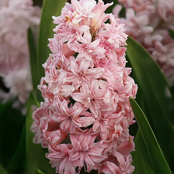 Pastelovo ružový plnokvetý hyacint s omamnou arómou.