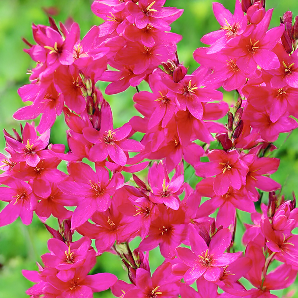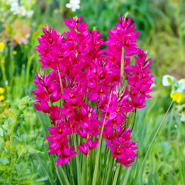 Ixia 'Mabel' spája exotickú krásu s eleganciou, predĺži kvitnutie až do leta a svojimi hviezdicovými magenta kvetmi dodá tvojej záhrade dramatický aj romantický šarm, ktorý iná cibuľovina neprinesie.