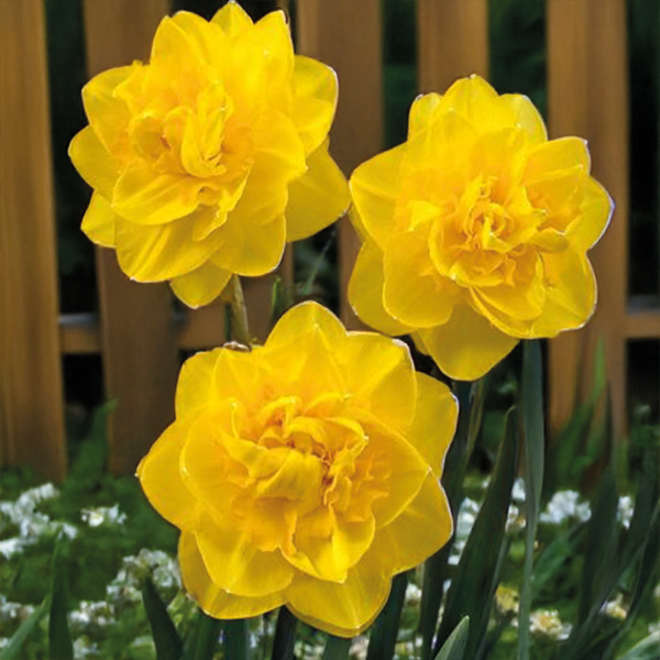 Plnokvetý, výrazne žltý narcis s príjemnou vôňou.