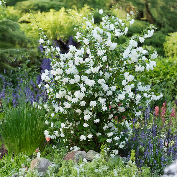 Veľké, plnokveté, žiarivo biele kvety so sladkou, lahodne silnou vôňou sa netypicky objavujú po celej dĺžke výhonov počas neskorej jari a leta. Jeho veľkou výhodou je, že má menší, hustý, stĺpovitý tvar, vďaka čomu sa dokonale hodí do menšej záhrady, trvalkového záhonu, romantického zákutia, pri chodníku alebo aj do väčšieho črepníka na balkón či terasu. Bude vďačný za slnečné až polotienisté stanovište a priepustnú, mierne vlhkú záhradnú pôdu. Je plne mrazuvzdorný, nenáročný a odolný voči chorobám i škodcom. Aby si zachoval kompaktný tvar, odporúča sa ho po odkvitnutí zľahka zostrihnúť.