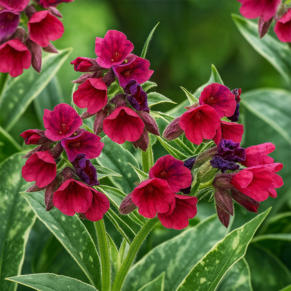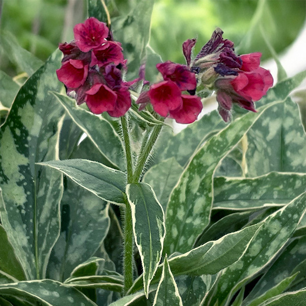 Pulmonaria 'Raspberry Frost' je pôdopokryvná trvalka, ktorá očarí už skoro na jar sýtymi ružovo-červenými kvetmi a zároveň dekoratívnymi listami. Tie majú tmavozelený základ s nepravidelnými striebornými škvrnami a jemne striebristým okrajom – vytvárajú tak elegantný kontrast aj po odkvitnutí.