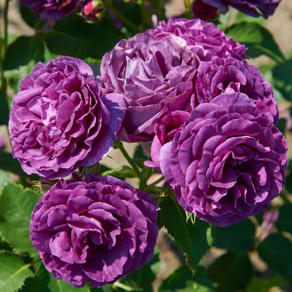 Majestátna ruža s plnými purpurovo-ružovými kvetmi.