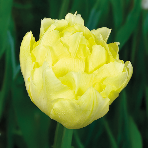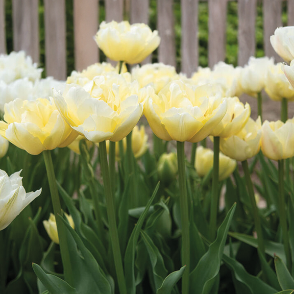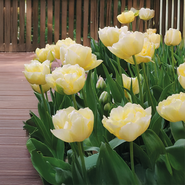 Tulipa ‘Verona’ je klenot medzi jarnými cibuľovinami. Jeho bohaté plnokveté kvety v krémovo-žltých tónoch pripomínajú nežné pivonky – nápadito vrstvené, jemné a elegantné. Každý kvet rozkvitá do šírky 8 až 10 cm a dorastá na pevných stonkách, vysokých až 40 cm. Vďaka tomu je ideálny kandidát nielen do záhonov, ale aj ako rezaný kvet – jemne vonia a vo váze vydrží veľmi dlho.